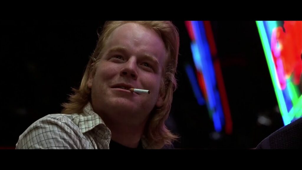 On the flipside of that coin, I did notice things that would become a staple of Anderson’s filmography. Most notable was the cast. In addition to lead actors Philip Baker Hall and John C. Reilly, the film featured future Anderson collaborators in minor roles. Robert Ridgely plays the manager of a casino, Melora Walters appears at the end of the film as Jimmy’s girlfriend, and most notably, Philip Seymour Hoffman plays the role of a young, annoying craps player. All five of these actors would go on to appear in both Boogie Nights and Magnolia (except Ridgley, who died while Boogie Nights was in post-production). Outside of the two films, Hoffman collaborates with Anderson in Punch-Drunk Love and The Master. Other things I noticed were the camera movements. Scenes with characters sitting and talking can be dull, unless done right. In these scenes with John and Sydney, Anderson moves the camera enough just for the scene to be lively, but the moves are subtle enough that they don’t distract either. The biggest thing I noticed was the tracking shot of Sydney walking from the bar, through the casino, and towards the exit. It’s probably 90 seconds long, but it foreshadows the three-minute opening tracking shot through the club in Boogie Nights and all of the dynamic camera movements throughout Magnolia. Because it made me laugh, I feel inclined to talk about a critical line of dialogue. In one scene, Jimmy tells Sydney they know many of the same people, including Floyd Gondoli and Jimmy Gator. I’m unsure if the foreshadowing was intentional, but those characters would appear in Boogie Nights and Magnolia, respectively, played by Philip Baker Hall.